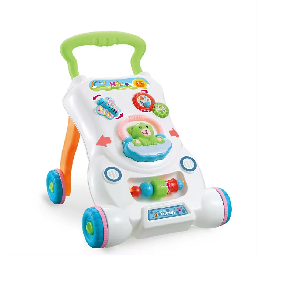 Andadera Caminador Bebes Primeros Pasos Musical Luces Osito Caminador Musical Interactivo es ideal para acompañar a tu pequeño en sus primeros pasos. Este diseño ofrece diversión y aprendizaje, con accesorios removibles que se adaptan al crecimiento de tu bebé.Su estructura resistente y segura proporciona estabilidad y confianza mientras el niño explora su entorno. Soporta un peso máximo de 14 kg, asegurando durabilidad.Incluye sonidos y melodías que fomentan el desarrollo auditivo del bebé, ofreciendo una experiencia musical con cada paso.Las partes desmontables facilitan la limpieza y el mantenimiento. Su diseño compacto permite un almacenamiento práctico.- Caminador divertido y colorido.- Instrumentos extraíbles.- Osito con luces y sonidos.- Engranajes y actividades variadas.- Contribuye a la estabilidad del bebé.- Elaborado con materiales seguros.- Producto hipoalergénico.