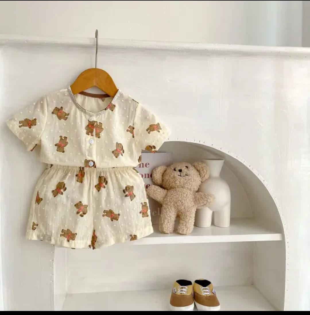 CONJUNTO EN TELA DE GASA SUPER FRESCO PARA CLIMA CALIENTE, COLOR BEIGE DISEÑO DE OSITOSTALLAS 66-73-80-90-100 EQUIVALE 0-3 / 3-6 / 6-9 / 9-12 / 12-18 MESES RESPECTIVAMENTEGARANTIA POR:PEDIDO INCOMPLETO-PRODUCTOS ROTO-MAL FUNCIONAMIENTO-ORDEN DIFERENTEplazo mínimo para reporte de garantías 3 Días