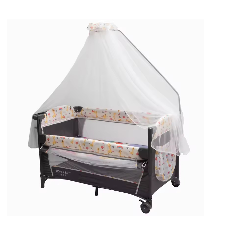 Movil giratorio con peluches.Tunel en el primer nivel.Con llantas y sistema de seguridad.Incluye maleta para transportar tipo camping.Malla transpirable.Tela engrosada.Bolsa de almacenamiento.Pie estable.