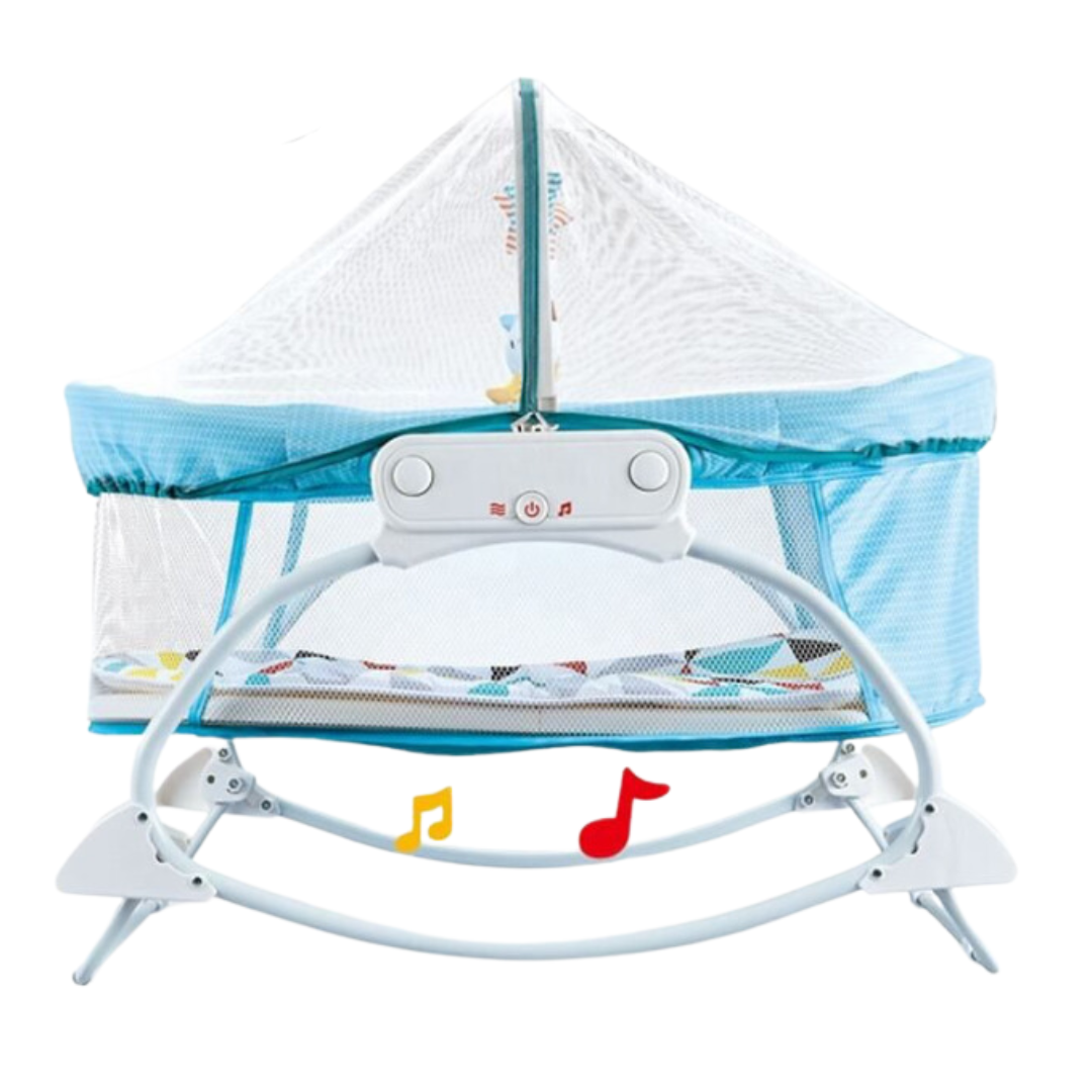 Moisés Mecedora Multifuncional para Bebés - Con Vibración, Música y ToldilloEsta cuna proporciona un lugar acogedor para su pequeño con su superficie plana y cómoda para dormir.¡Dale a tu bebé el descanso que se merece con nuestro moisés mecedora multifuncional! Diseñado para ofrecerle comodidad y tranquilidad desde sus primeros días, este moisés combina las mejores características para calmar y arrullar a tu pequeño.Movimiento de Mecedora: Su suave balanceo ayuda a relajar y dormir a tu bebé en cuestión de minutos.Vibración Calmante: Incluye una función de vibración ajustable que simula el suave latido del corazón, proporcionando una sensación de seguridad.Música Relajante: Con melodías especialmente seleccionadas para inducir el sueño y calmar a tu bebé.Toldillo Protector: Ideal para proteger a tu bebé de insectos y mantener un entorno seguro y acogedor.Peso soportado: Producto ideal para soportar un peso maximo de 40lb/18kgADEMAS:Ideal para bebes de 0 a 12 mesesMedidas del producto: 78CM X 80CM X 45CMMusical y Vibracion Este moisés no solo es funcional, sino también elegante, con un diseño moderno que se adapta a cualquier espacio. ¡Haz de cada siesta un momento mágico para tu bebé!