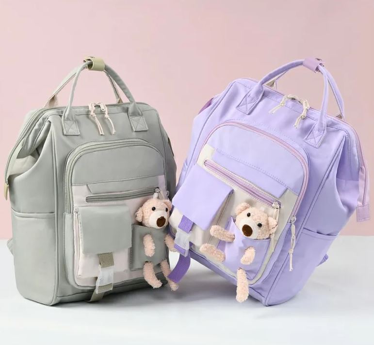 Pañalera de osito con bolsillo trasero y bolsillo termico.¡Disponible en 4 colores!