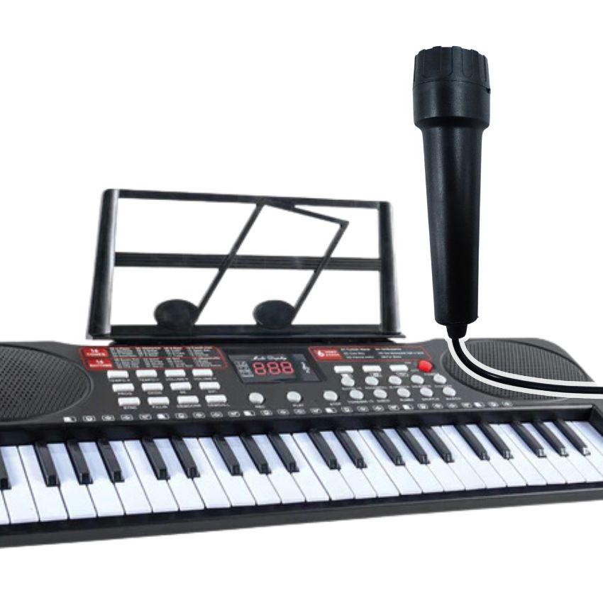 Contiene:PianoCable USBMicrófonoCaracterísticas destacadas:Piano de 49 teclas con micrófono: el teclado de piano de juguete para niños está equipado con un pequeño micrófono, no solo pueden tocar el piano, sino también cantarJuguetes musicales multifuncionales: integrado con 16 tonos, 16 ritmos, 6 demostracionesAyuda a desarrollar las habilidades de rendimiento de los niños y hacer que los niños tengan más confianza. Incluye cable USBControl de volumenIncluye función de "Grabar y reproducción", los niños pueden producir y grabar sus propias pistasEdad recomendada: +3 añosMedidas del producto: Ancho: 16,9 CmLargo: 54 CmMedidas del empaque:Alto: 17,3 CmLargo: 54,4 CmAncho: 5,8 CmFunciona con cuatro baterías AA (no incluidas)