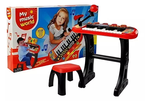 ¡Haz que cada nota cuente y conviértete en una estrella musical!Descubre el mundo de la música con el Piano Órgano Teclado Musical con Asiento, Luces y Sonido. Este teclado educativo está diseñado para que los niños se sumerjan en la música, desarrollen su creatividad y se diviertan tocando sus primeras melodías.Especificaciones:- Teclas: 24 teclas táctiles- Efectos de Sonido: Varios ritmos, demos y efectos sonoros- Material: Plástico ABS resistente- Micrófono: Con cable ajustable para cantar mientras se toca- Luces: Luces de colores que se activan con la música- Alimentación: Funciona con pilas AA (no incluidas)Nota Importante: Para este producto no se puede usar la transportadora Coordinadora. Por favor, elige otra opción de envío para evitar problemas con los despachos. ¡Gracias por tu comprensión!