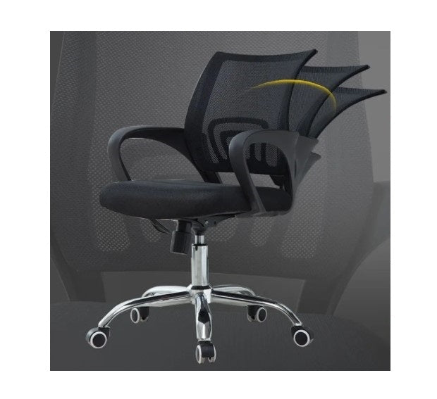 FICHA TÉCNICA : Espaldar en Malla Elevación neumática. Base en metal cromado de cinco puntas, Brazos fijos en polipropileno, Asiento tapizado en espuma y forrado en malla resistente Resistencia Max: 100 KG