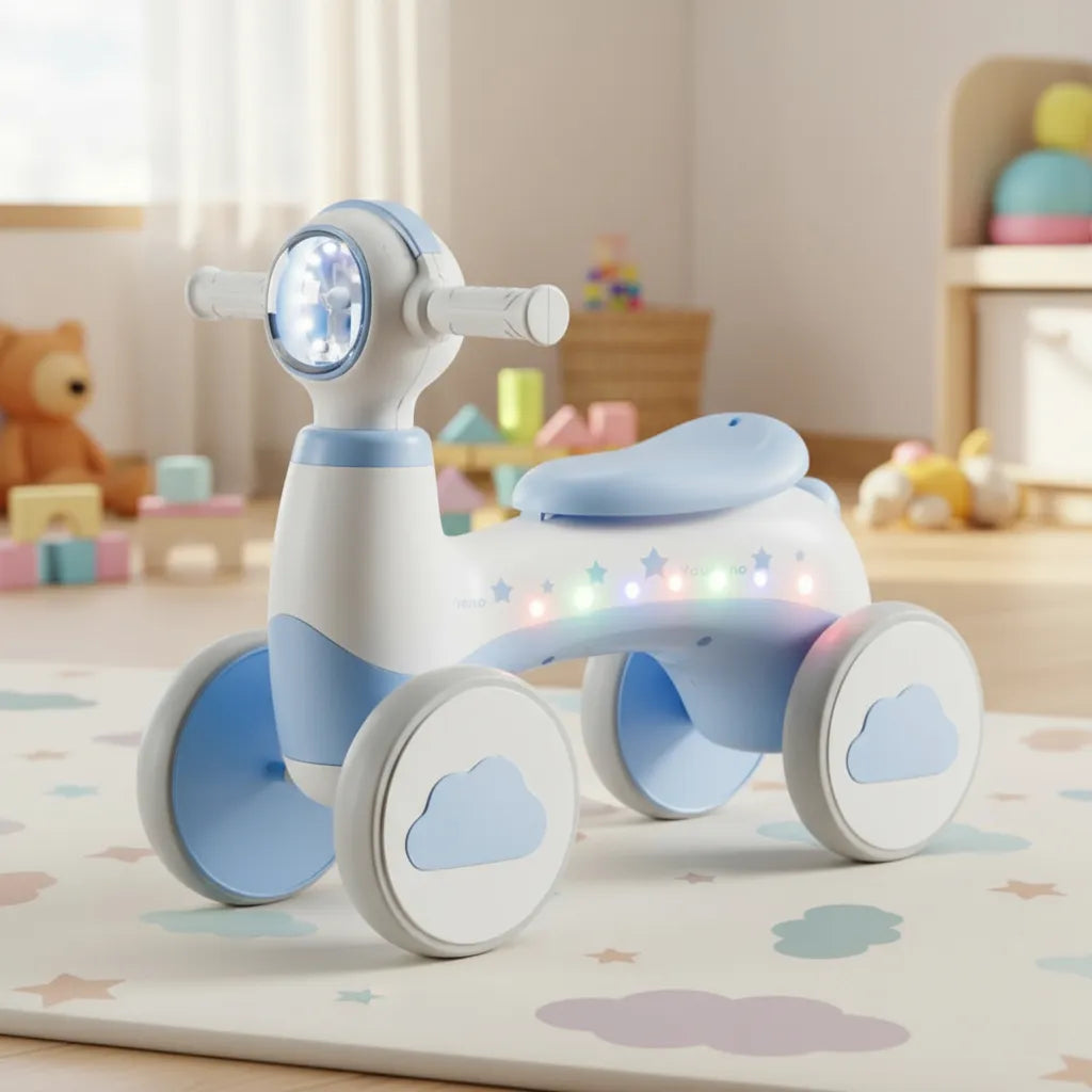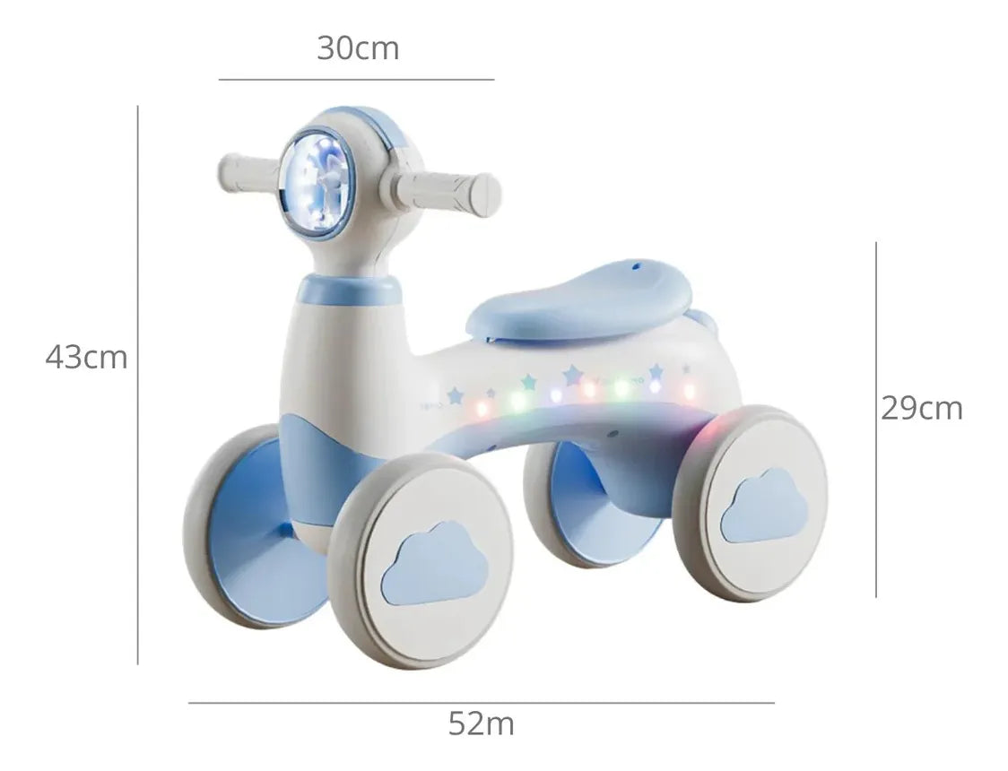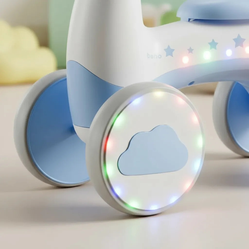 Correpasillos temático espacial con luces y sonido, ideal para niños de 1 a 3 años. Su diseño con astronauta iluminado, nubes y estrellas estimula la imaginación mientras favorece la motricidad y el equilibrio.